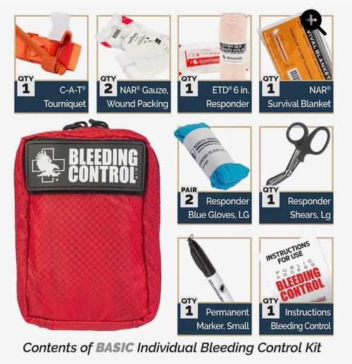 These kits contain items such as gloves, coagulants, tourniquets, dressings, gauze, and other supplies that help manage or stop the flow of blood from a wound.QuantityComing soon