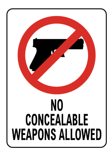This sign is compliant with SC Code Section 23-31-235 as amended by Section 5 of the Open Carry with Training Act.
